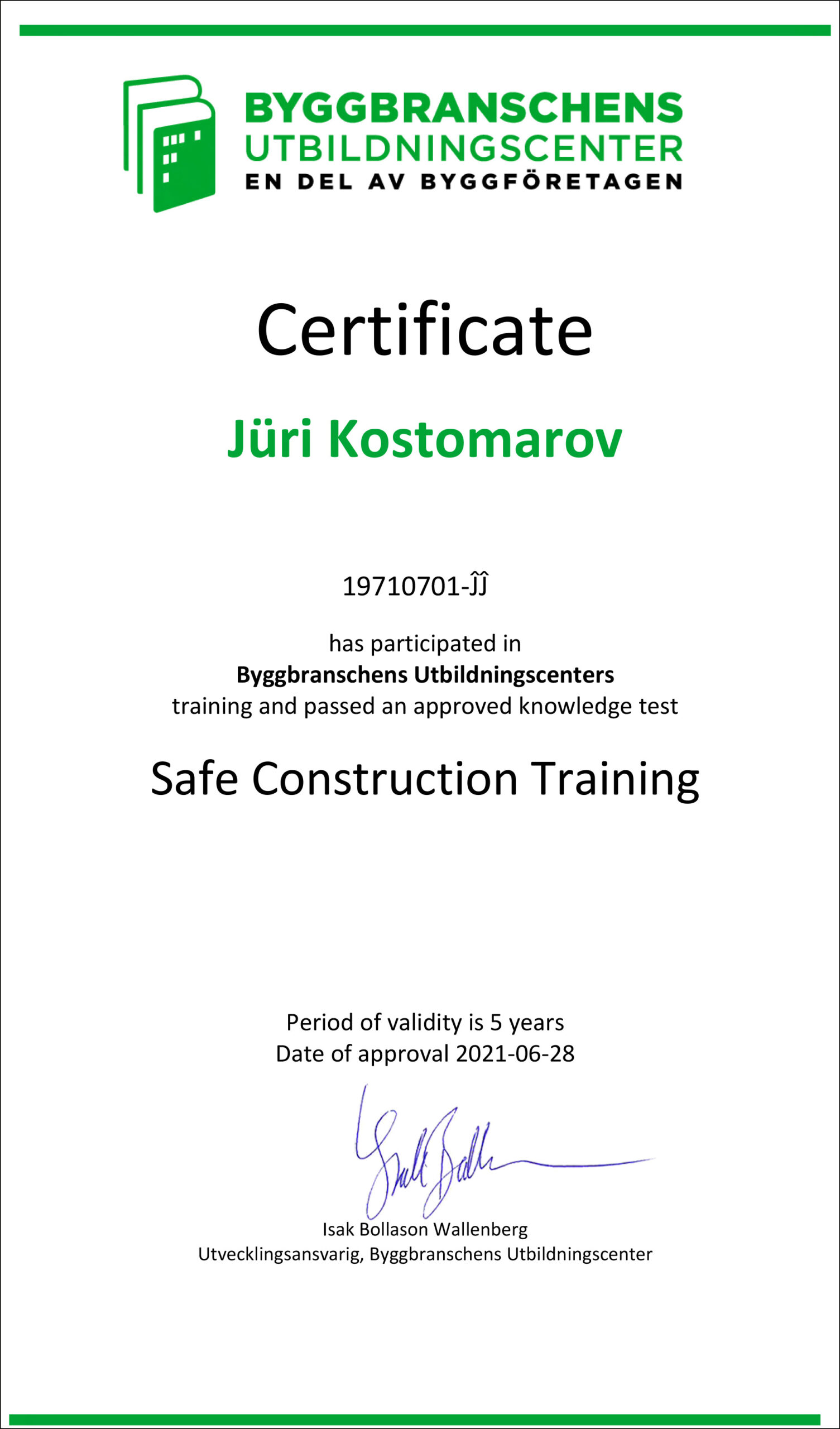 Maspab har nu kompetens som byggarbetsmiljösamordnare!
