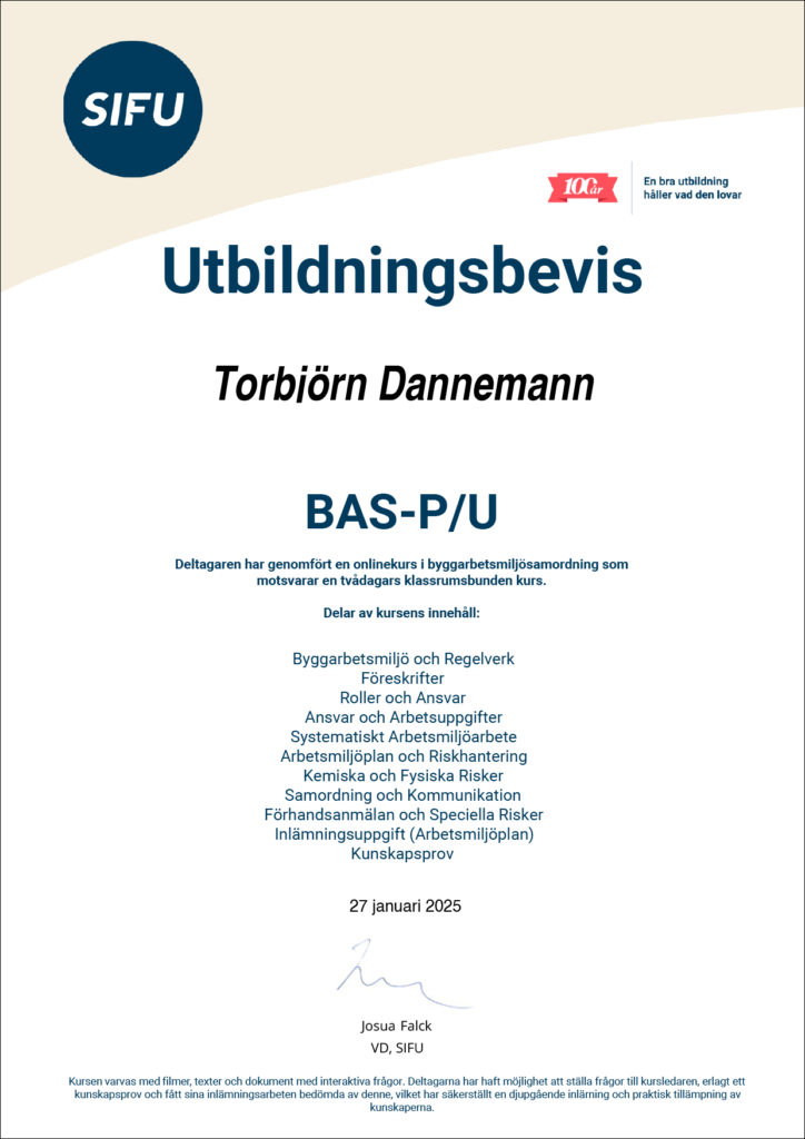 Nu har Maspab egen kompetens enligt BAS U och BAS P. Byggarbetsmiljösamordnare är en viktig kompetens som säkerställer medarbetarnas och omgivningens säkerhet i byggprojekt.
