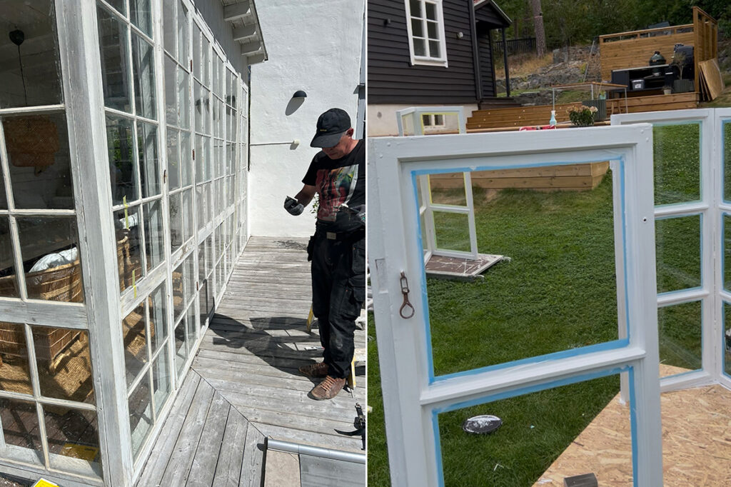 Helronovering av gamla fönster i ett orangerie och en villa i Saltsjö-Boo. Nytt kitt och målning/spackling samt även nya beslag på villans fönster.