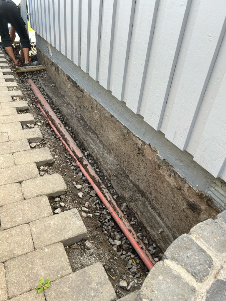Vi utför dräneringsarbeten och tar ansvar för hela genomförandet. Arbetet planeras utifrån husets och tomtens förutsättningar och utförs med rätt metod och resurser – från handgrävning vid känsliga partier till grävmaskin och eget släp med tipp. Resultatet är en långsiktig lösning som skyddar huset mot fukt.