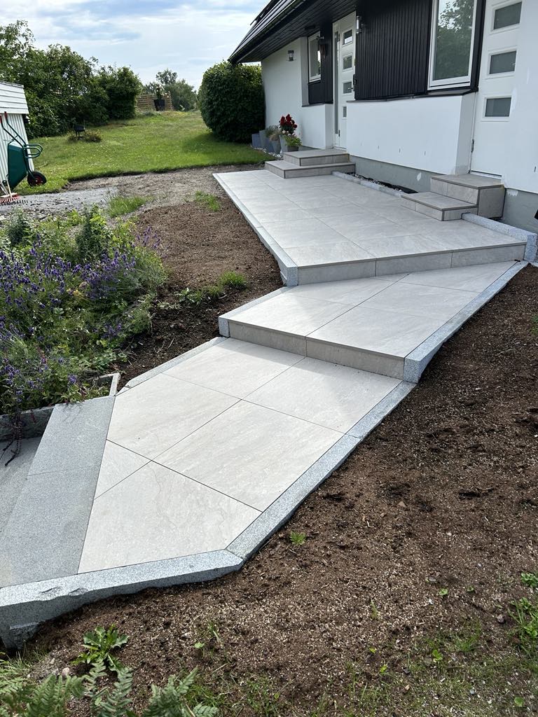 Med markarbete menar vi i första hand stenläggning med natursten, betongsten och grus för uppfarter, gångar, uteplatser och andra ytor. Ett gediget underarbete är grunden för ett hållbart resultat, och vi anpassar metod och resurser efter platsens förutsättningar – från handarbete till grävmaskin och eget släp med tipp.